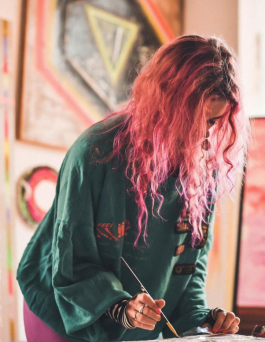 Mimo Mali, also known as MYMO, is a pioneering contemporary urban artist with a global following. Her multidisciplinary art, deeply rooted in nature and the universe, merges abstract elements with mysticism, cosmic influences, and tribal motifs, using vibrant colors and geometric forms to convey the language of nature. Mimo Mali's art operates on a subconscious level, translating dream worlds into captivating visuals, inspired by her North African roots and a fascination with ancient civilizations like Egypt.